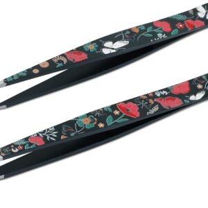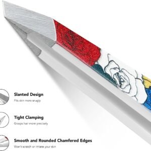 UBI-9.7cm Premium Floral Design Slant Tip Tweezers | Professional Eyebrow & Ingrown Hair Remover Tool