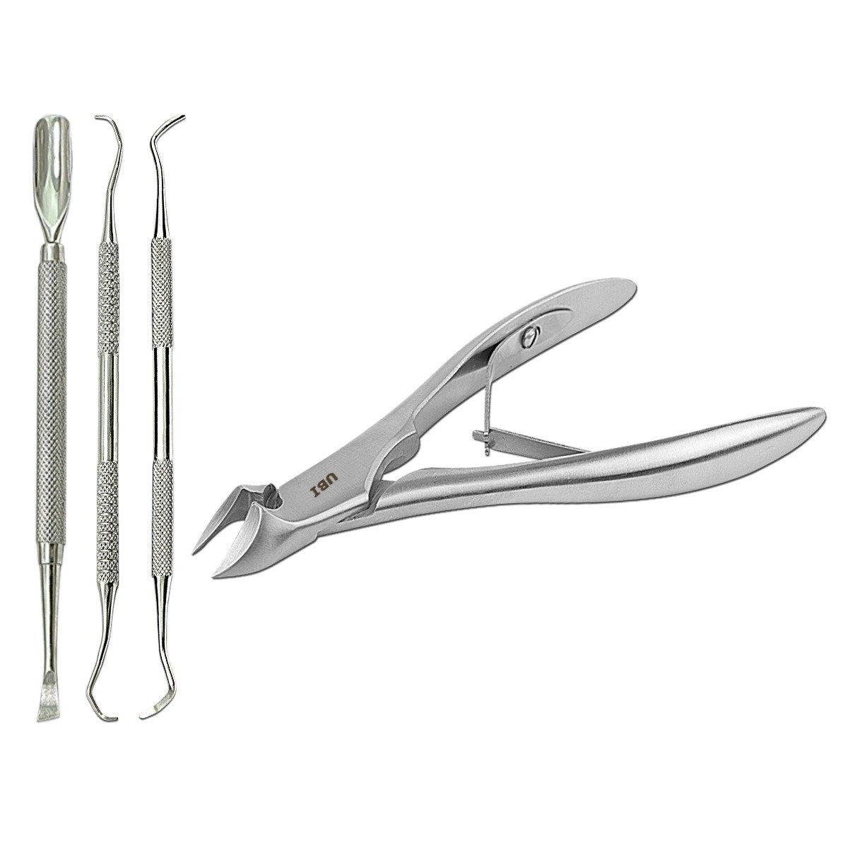 - Cuticle & Ingrown Nail Pusher: Fine, curved tips for precise trimming in tight spaces and carefully addressing ingrown nail corners.